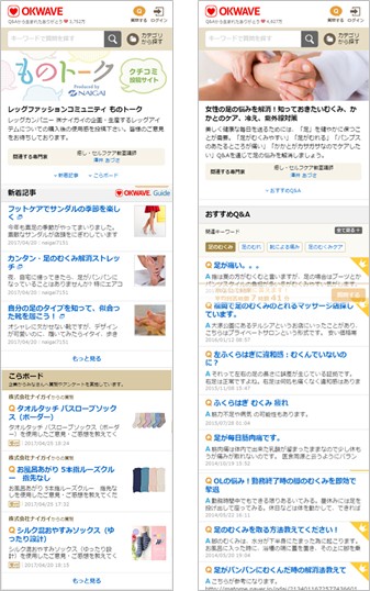 『OKWAVE JOIN』の「企業コミュニティー」の第1弾として株式会社ナイガイ(本店:東京都港区、代表取締役社長:今泉 賢治)が参加し、「レッグファッションコミュニティ ものトーク」を公開し、ユーザーの足元に関する悩みに関するQ&Aを集約し、解決できる場を提供します。